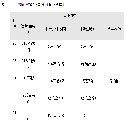 结构材料:压力容室、接头、泄放阀、隔离膜片等与测试介质接触的部件材料有316L不锈钢、哈氏合金、蒙乃尔等可选择,电气外壳为低铜铝合金,螺栓为碳钢镀铬;安装影响:当工作膜片未垂直安装时,可能产生不大于0.24的零位误差,此误差可通过调整零位来消除,对量程无影响;电源影响:小于输出范围的0.005%/V;负载影响:电源稳定时,几乎无负载影响;连接方式:引压接头上的连结螺纹为NPT1/2;输出电缆连接孔的螺纹为M20×1.5。